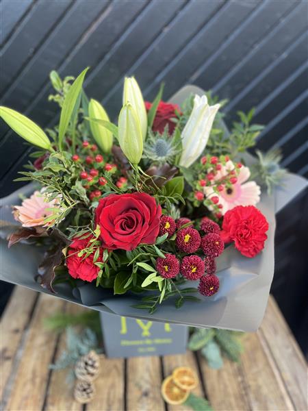Each bouquet is carefully hand-tied, wrapped in premium paper, and presented in our signature Flowers by Moira gift box, finished with your message attached, making it the perfect Christmas flower gift or a beautiful seasonal centrepiece. Choose 'Moira's Choice' for exceptional quality and reliable flower delivery in Meath and Dublin this festive season.