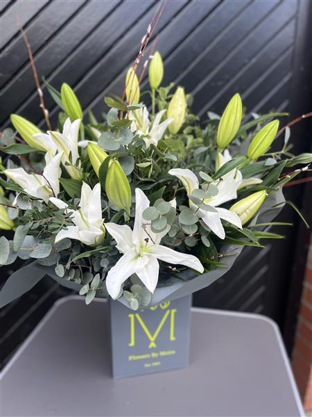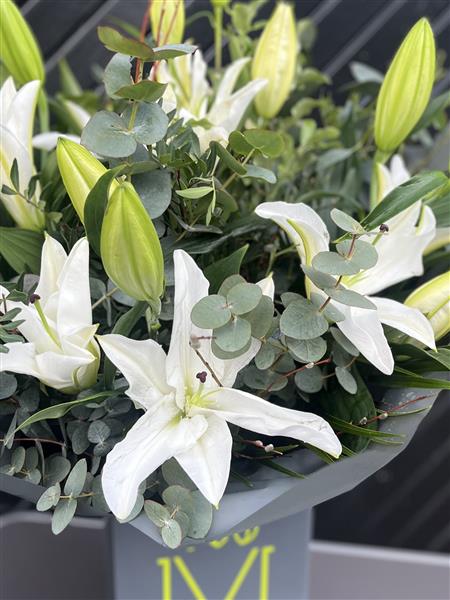 Bring timeless beauty and a captivating fragrance into any space with our Lily Lane bouquet, lovingly created by our team. This exquisite hand-tied arrangement features the most beautiful Oriental lilies, famous for their heavy scent that will enchant your senses.